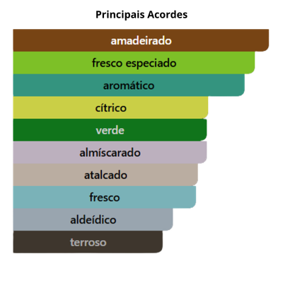 As notas de fundo são: Almíscar, Vetiver, Cedro, Musgo de Carvalho, Âmbar e Fava Tonka.