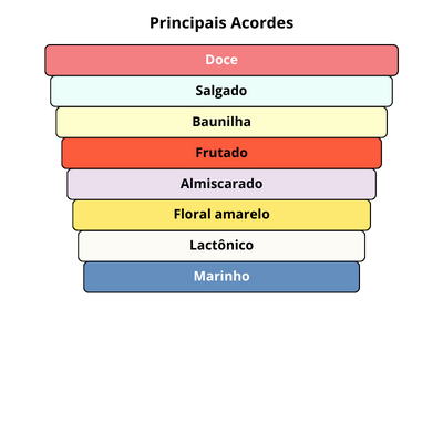 As notas de fundo são: Chantilly, Almíscar, Fava Tonka, Patchouli e Baunilha.