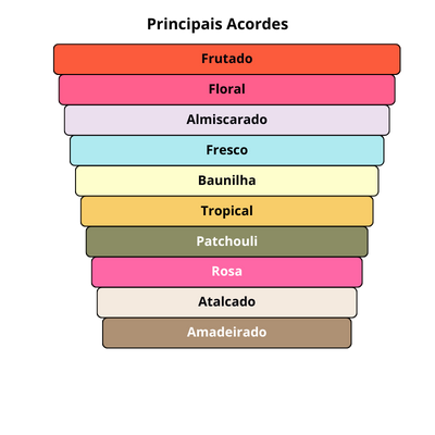 As notas de fundo são: Almíscar, Baunilha e Patchouli.