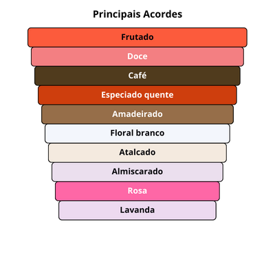 As notas de topo são: Framboesa, Café, Lavanda e Bergamota.