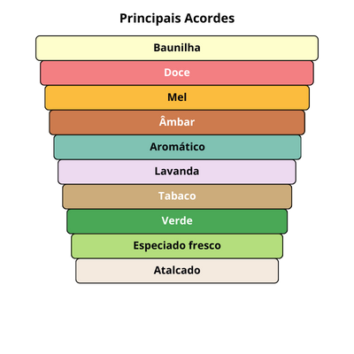 As notas de fundo são: Mel, Fava Tonka e Tabaco.