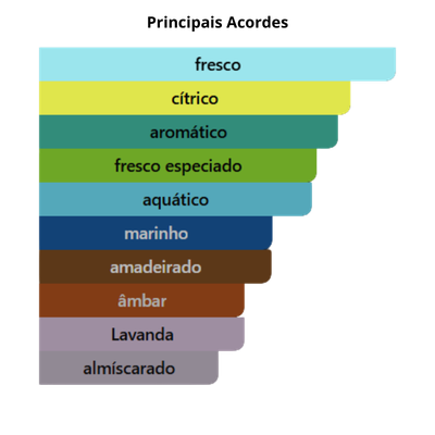 As notas de topo são: Cascalone®, Aquozone®, Bergamota e Mandarina.