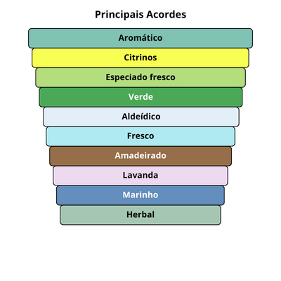 As notas de topo são: Hortelã, Aldeídos, Lavanda, Bergamota, Mandarina, Limão, Artemísia e Néroli.