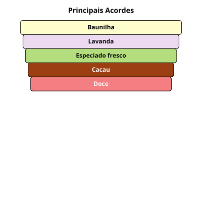 As notas de topo são: Baunilha, Lavanda, Cacau e Gengibre.
