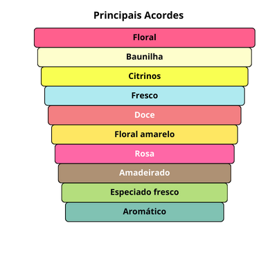As notas de topo são: Bergamota e Amêndoa Amarga.