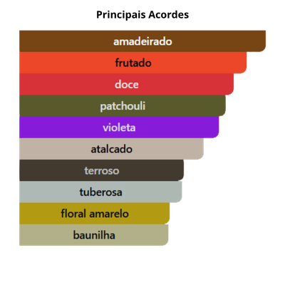 As notas de fundo são: Patchouli, Baunilha e Vetiver.
