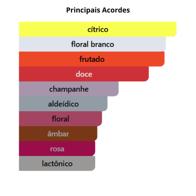 As notas de topo são: Morango, Champanhe, Tangerina, Laranja Sanguínea e Rosa.