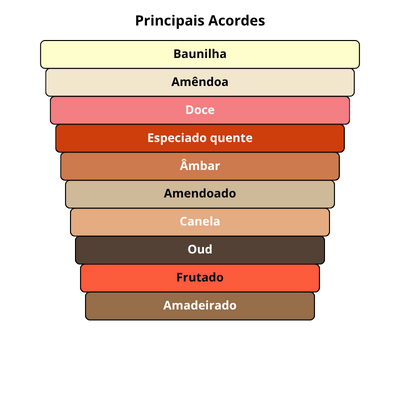 As notas de fundo são: Absoluto de Baunilha, Fava Tonka e Âmbar.