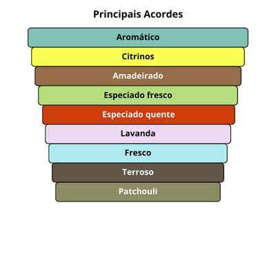 As notas de fundo são: Vetiver, Cedro e Patchouli.
