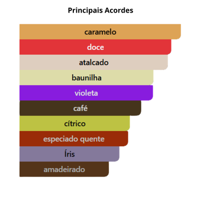 As notas de fundo são: Caramelo, Baunilha e Patchouli.